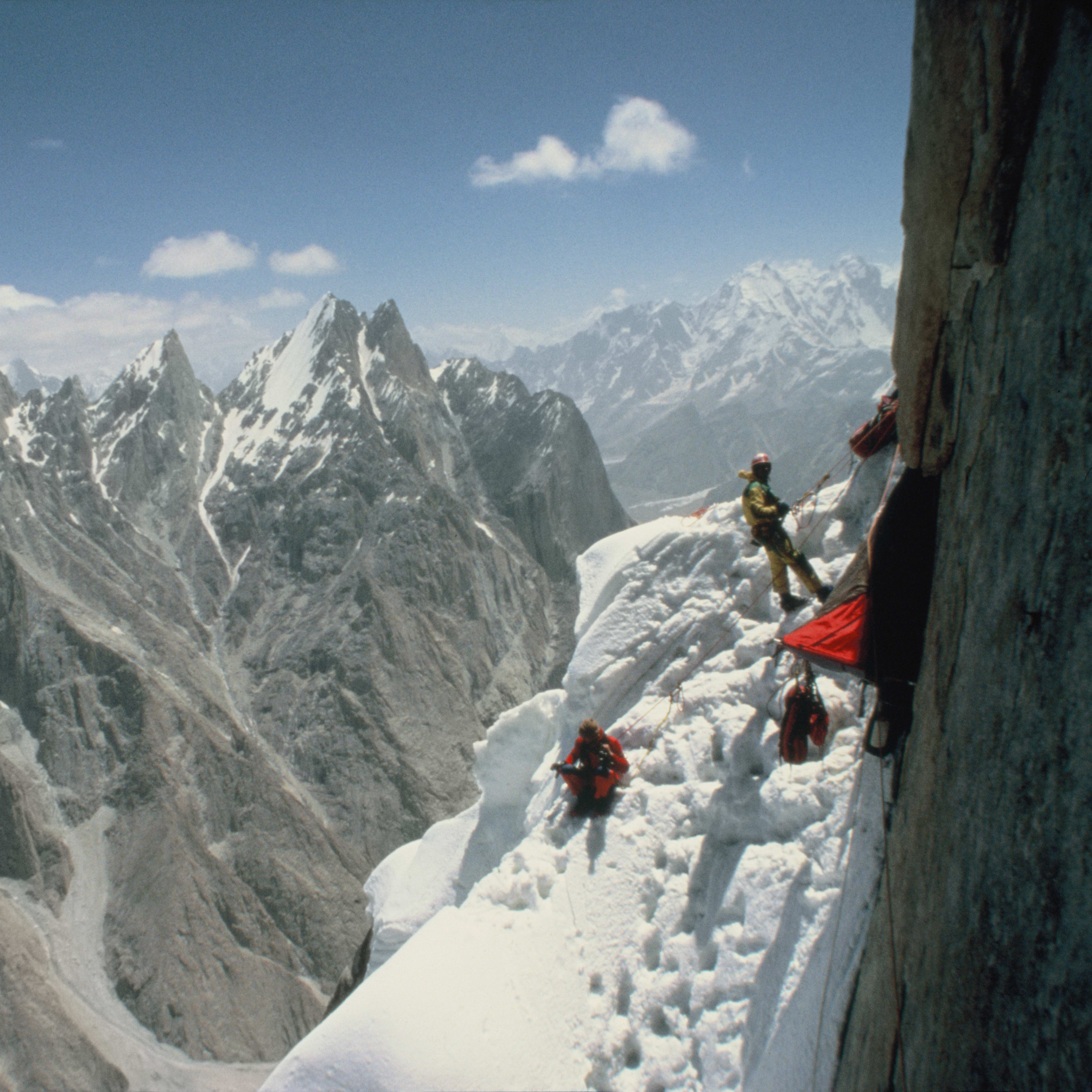 After an emotional discussion – while hanging in portaledge tents several thousand meters above the Baltoro Glacier – Dag and Stein volunteer to go down. Given the amount of food remaining, it's the only way any of them will be able to reach the top.