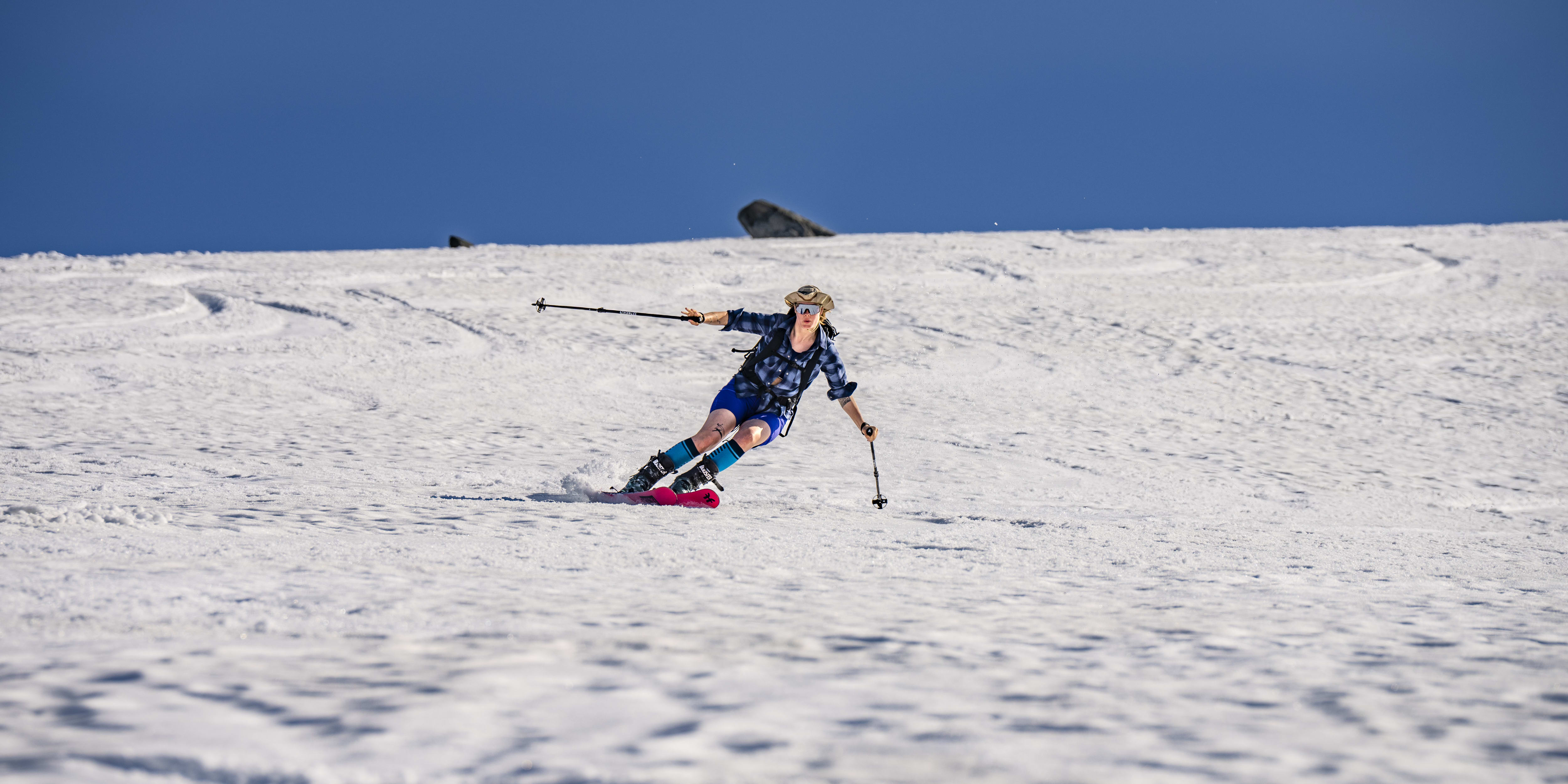 However people might imagine spending their summers, very few go seeking out the last bits of snow. But for those few, those keen winter enthusiasts, it’s all about the slushy summer days. I’m talking silky, dampened snow, open Gore-Tex pants, cotton shirts, hell, even sport bras and bare upper bodies, extreme goggle-tans and shorts pared with ski socks. I know what you are thinking: who chooses to go skiing over laying on a sunbed with a pina colada in hand in Greece? I’ll tell you; the ski bums do.