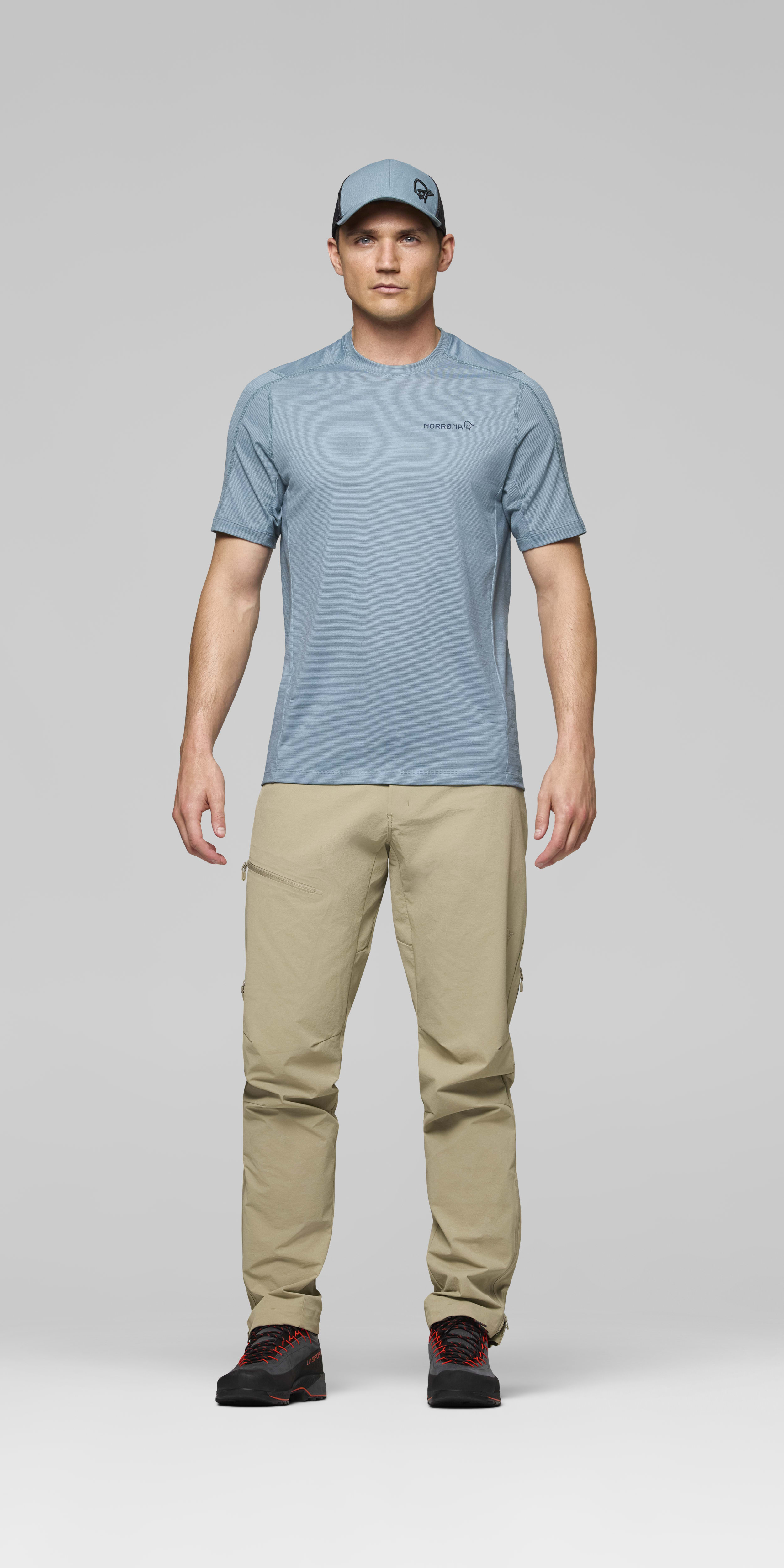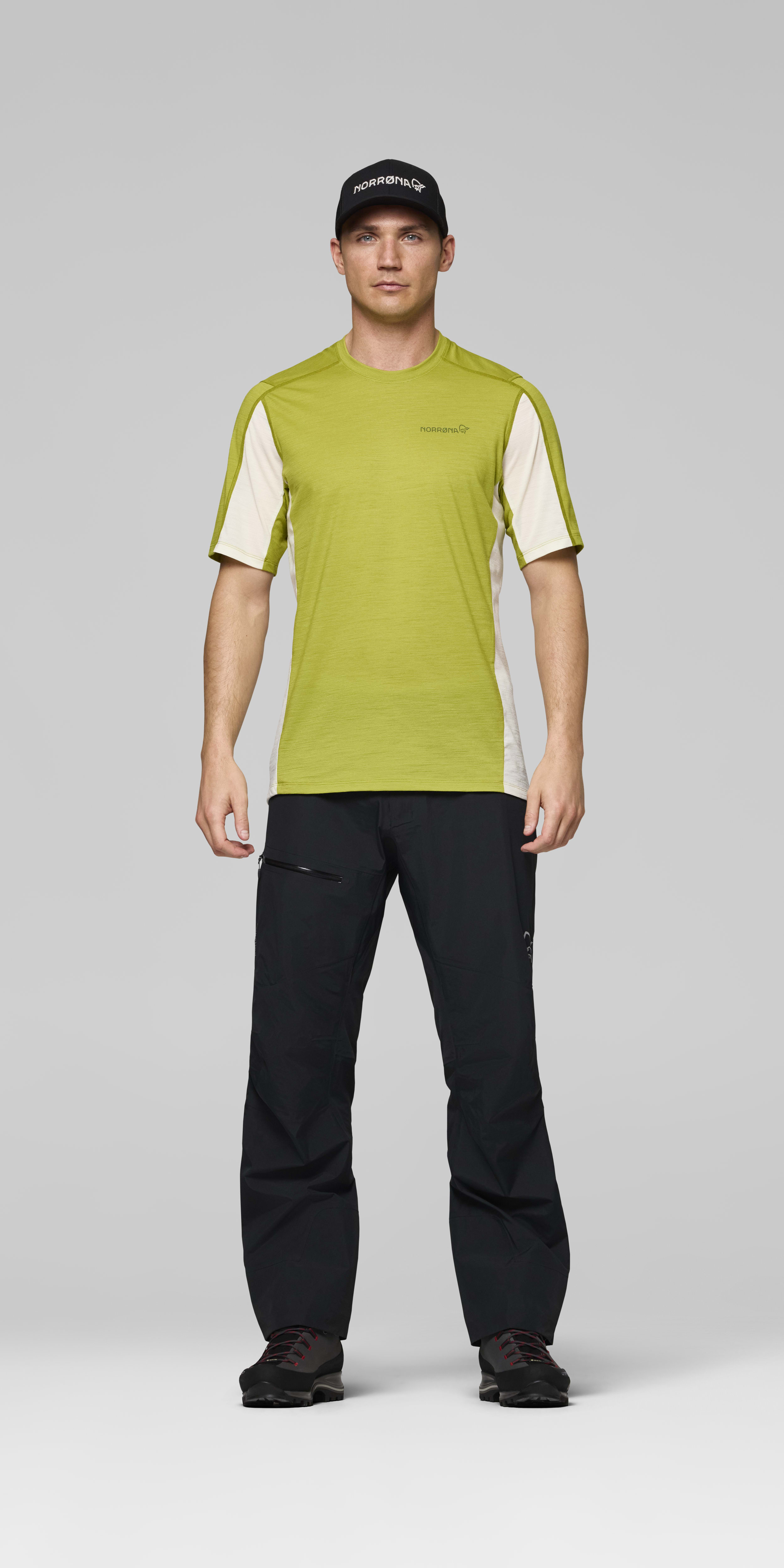 A versatile, quick-drying, lightweight base layer T-shirt in wool/synthetic mix.